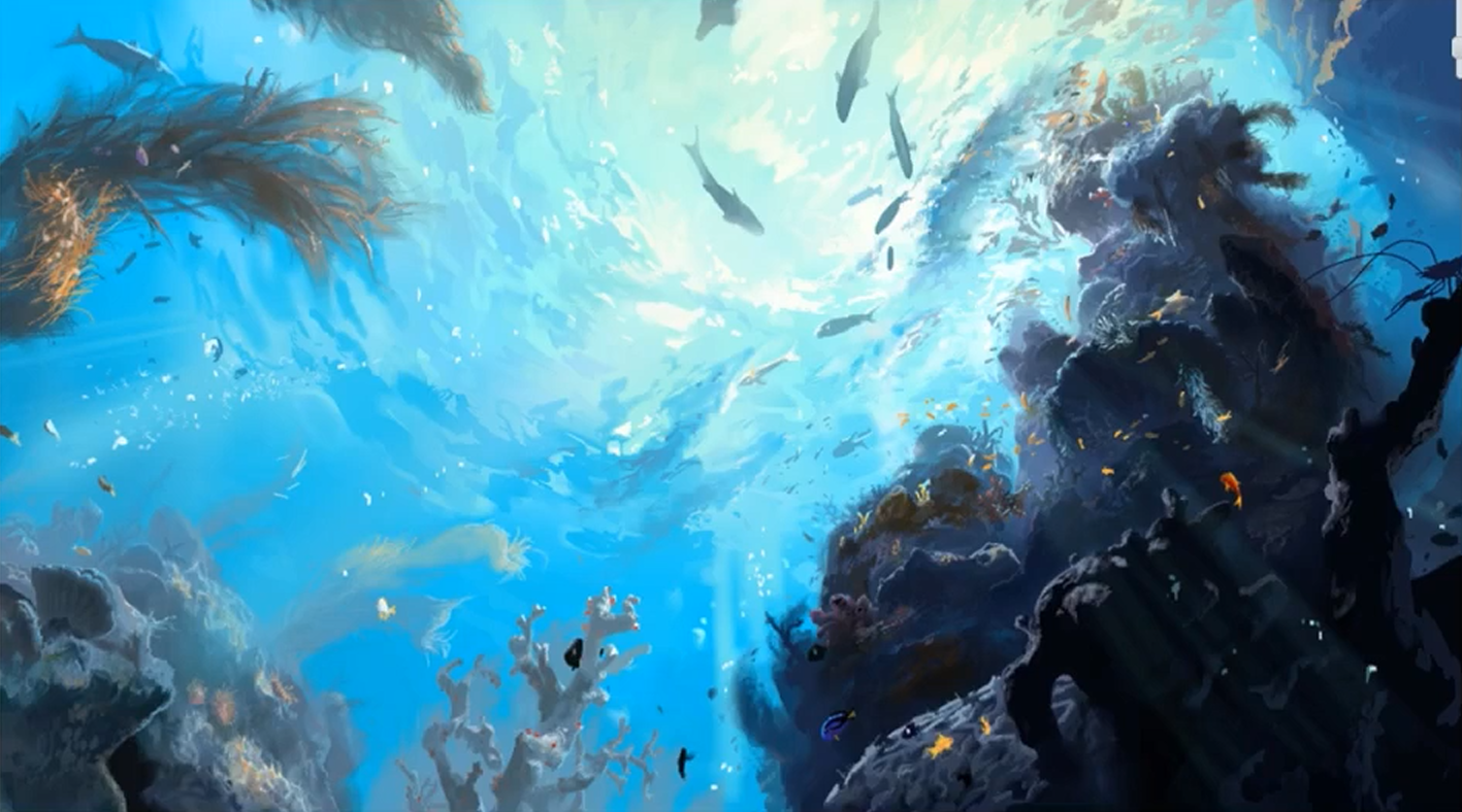 Омытый тёплыми течениями Жемчужного моря, он сияет в лучах двойных солнц, искрясь всеми цветами океана. Пёстрые росчерки чешуи, тени грациозных левиафанов, парад красок и безмятежная игра света в толще изумрудных вод наполняет здешние места невообразимым торжеством и благоговением, с какого бы края света ты сюда не приплыл.