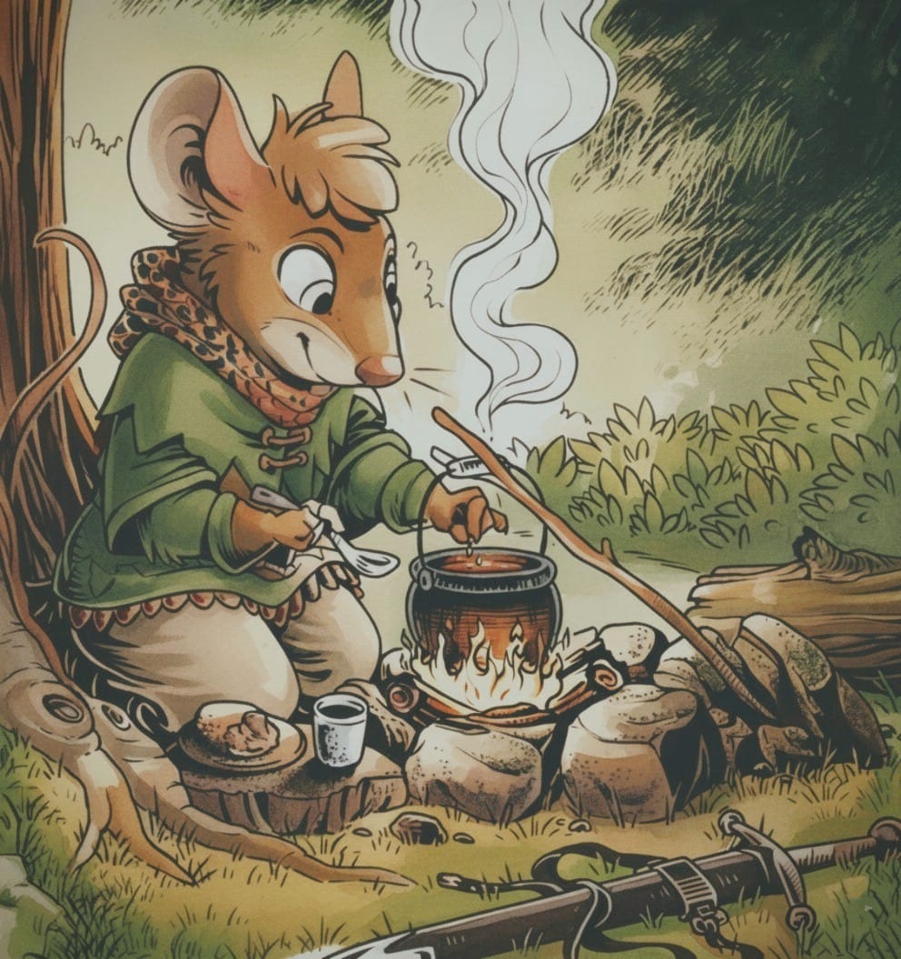 За старими переказами, блискавка, що колись влучила у самотнє дерево на пагорбі, зупинила страшну бурю, яка майже затопила усю долину. З тих пір то дерево отримало назву Грімвель, та стало домом для десятків мишачих родин. Під його потрісканою корою миші вили гнізда, зберігали зерно, сушили трави, а вечорами слухали байки старійшин про давні часи, коли долина була молодою, а звірі ходили лісом без страху. Життя текло спокійно та рівно, мов тихий струмок: день за днем, сезон за сезоном. Хижаки подекуди навідувались із Тихолісся, а люди з’являлися лише зрідка — переважно навесні, щоб половити рибу чи запалити багаття біля покинутої хатинки на іншому березі ріки.