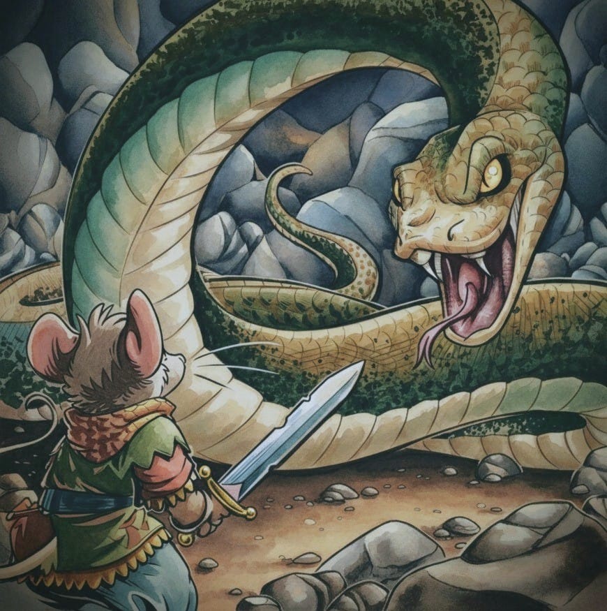 Величезні багатства знайдуть ті, хто готовий ризикнути. Світ старий. Великі імперії мишей та інших звірів з’являлися і занепадали. Там чекає величезний і небезпечний світ. Він не виглядає приязним до маленьких мишенят. Але якщо ви дуже хоробрі, дуже розумні й хоча б трохи везучі, ви можете вижити. А якщо проживете достатньо довго, то зможете навіть стати героєм.
